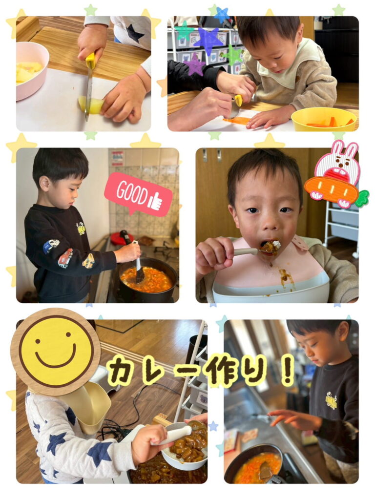 野菜を切ったり、お肉やルーを入れたり、混ぜたりとみんなで協力して作りました✨