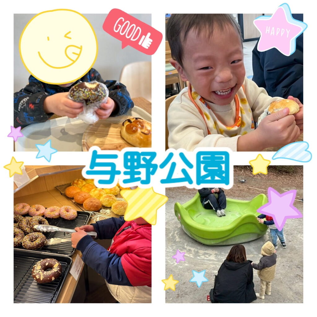 今回はバスの乗って与野公園まで遊びに行きました! 新しい遊具に大興奮な子どもたち! 山や階段を登って降りてみたり、回転遊具に乗ってくるくる回るのを楽しんだ後は、パン屋さんでお買い物🥖 みんな美味しいパンを食べてニコニコでした😊