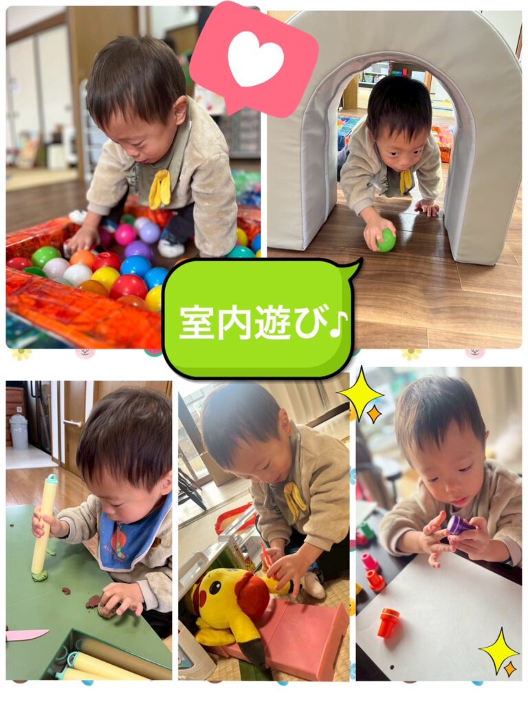 ソフトマットやボールプール遊びで身体を動かし、粘土やプラレールでじっくり遊ぶ時間もありました😊
