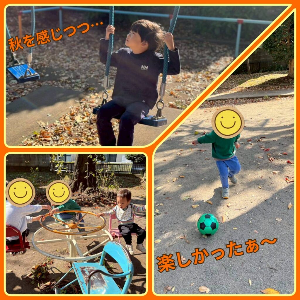 今日は公園では落ち葉が沢山落ちていたり、風で落ち葉が落ちてくる様子を見ているお友達もいました。
