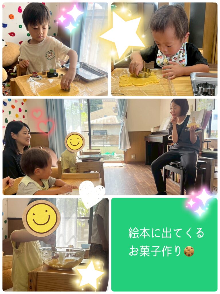 匂いや触覚など五感を使いながら、生地をかき混ぜたり型抜きに取り組んでいた子どもたち😊