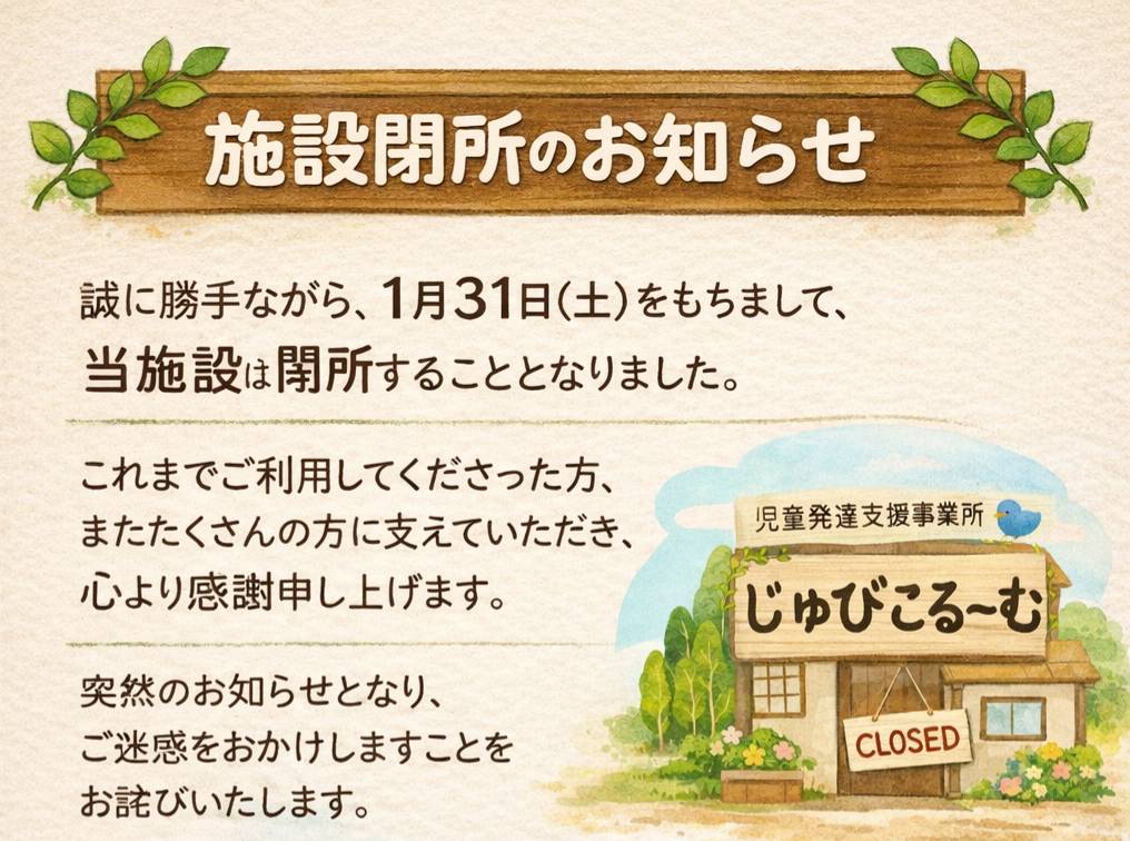 閉所のお知らせです💦