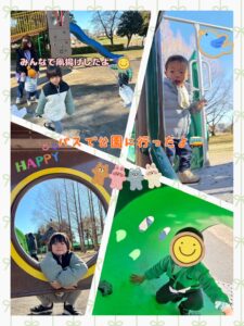 今回は前回作った凧揚げを持って公園に行ってきました🪁 凧を持って上手に公園内を走り回る子どもたち! 凧揚げを楽しんだ後は、遊具でたくさん体を動かして楽しんできました😊